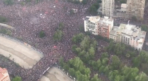 示威者集中在圣地亞哥市中心名為意大利廣場的地標,現場人頭攢動,群情激憤。BBC新聞網形容,這是智利于上世紀九十年代“民主化”以來最大規模的一次游行。