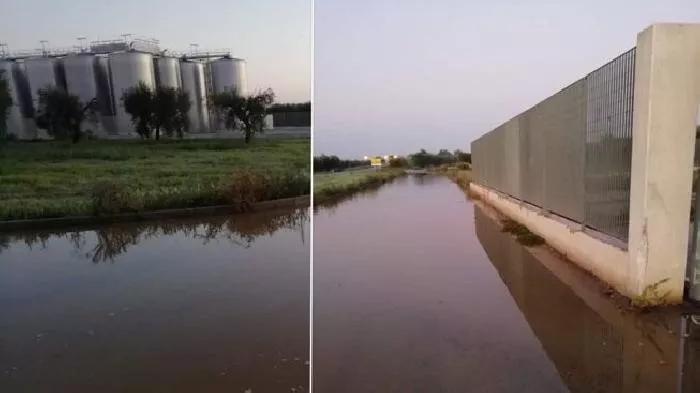 這不是什么護(hù)城河,這是彌漫的紅葡萄酒。2015年年末,Riverland Vintners酒莊約120萬(wàn)升正在桶中發(fā)酵的紅葡萄酒被破壞者釋放。