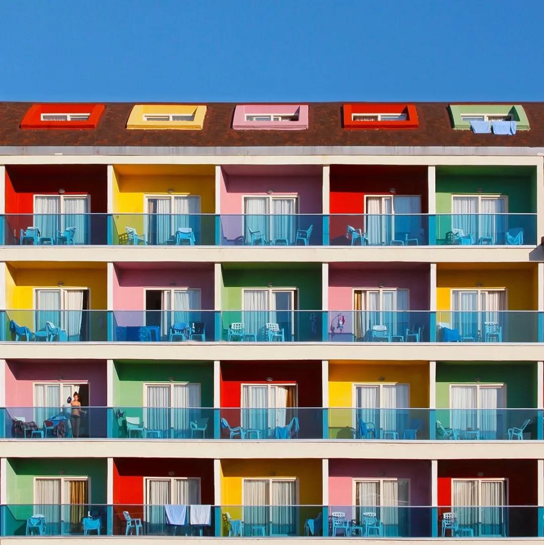 托倫把他對建筑設(shè)計和攝影的喜愛完美的結(jié)合在了一起,他所拍攝的彩虹建筑就像是從電影中截取出來的圖片。