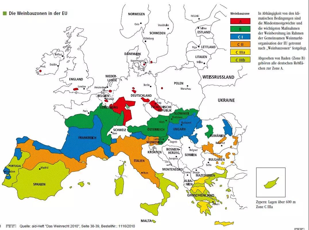 上眼看這張歐盟27國(guó)葡萄酒產(chǎn)區(qū)劃分圖(依據(jù)氣候)。