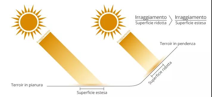 斜坡意味著陽(yáng)光能夠以接近垂直的角度照射在葡萄園上,相比平地上能夠吸收更多的熱量,南側(cè)朝向則能夠保證更長(zhǎng)的日照時(shí)間,而河流除了能夠反射陽(yáng)光,其比熱容大*的特點(diǎn)也在晝夜溫差調(diào)節(jié)方面起著不可忽視的作用。