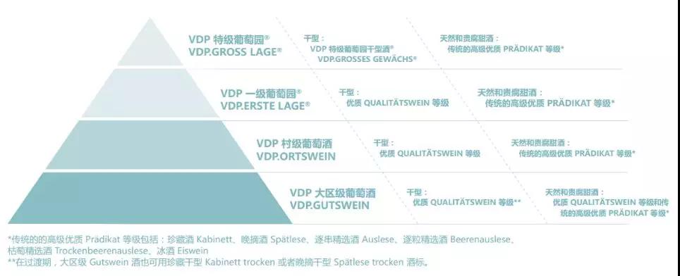 為解決這一情況,200余家酒莊自發(fā)成立的老牌民間組織——德國(guó)精品酒莊聯(lián)盟(Verband deutscher Pr?dikatsweingüter,VDP)推出了一套分級(jí)系統(tǒng)將德國(guó)拉回了鹽甜兼具的局面。