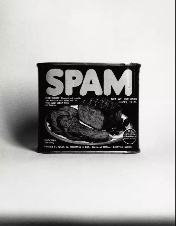 杜瓦諾讓畢加索與面包嬉戲后,另一位波普藝術家登場。艾德·魯沙(Ed Ruscha) 的《斯帕姆午餐肉》(Spam, 1961)與安迪·沃霍爾的《金寶湯罐頭》(Campbell's Soup Can, 1962)有異曲同工之妙。去掉顏色的午餐肉好像還顯出一絲正色,不像它代表的快餐文化那樣輕浮。