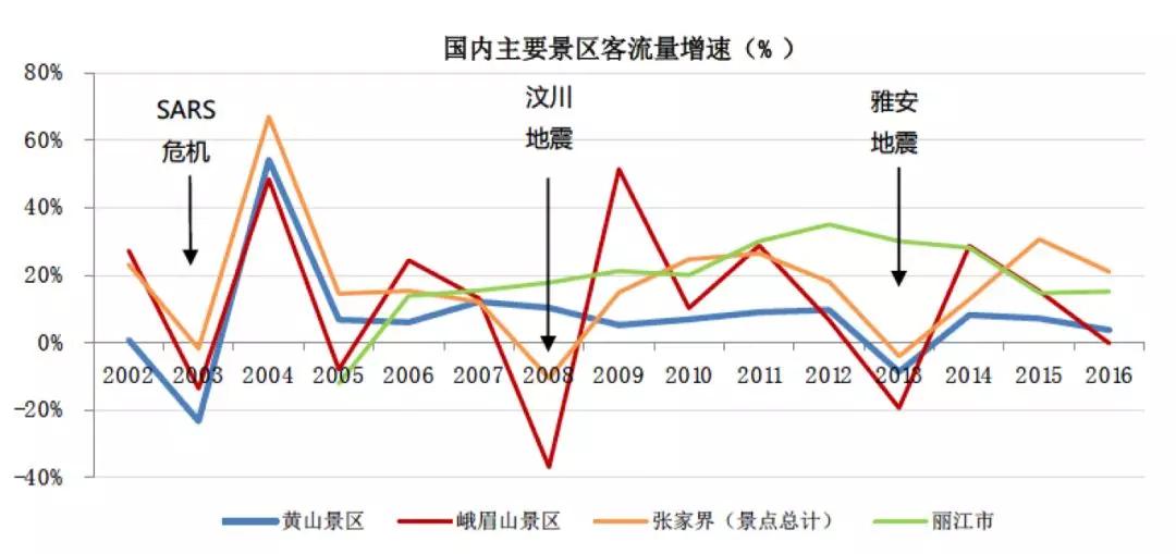 景區方面,2004年黃山、峨眉山、張家界景區客流增速達到54%、48%和67%,復蘇力度較為明顯。