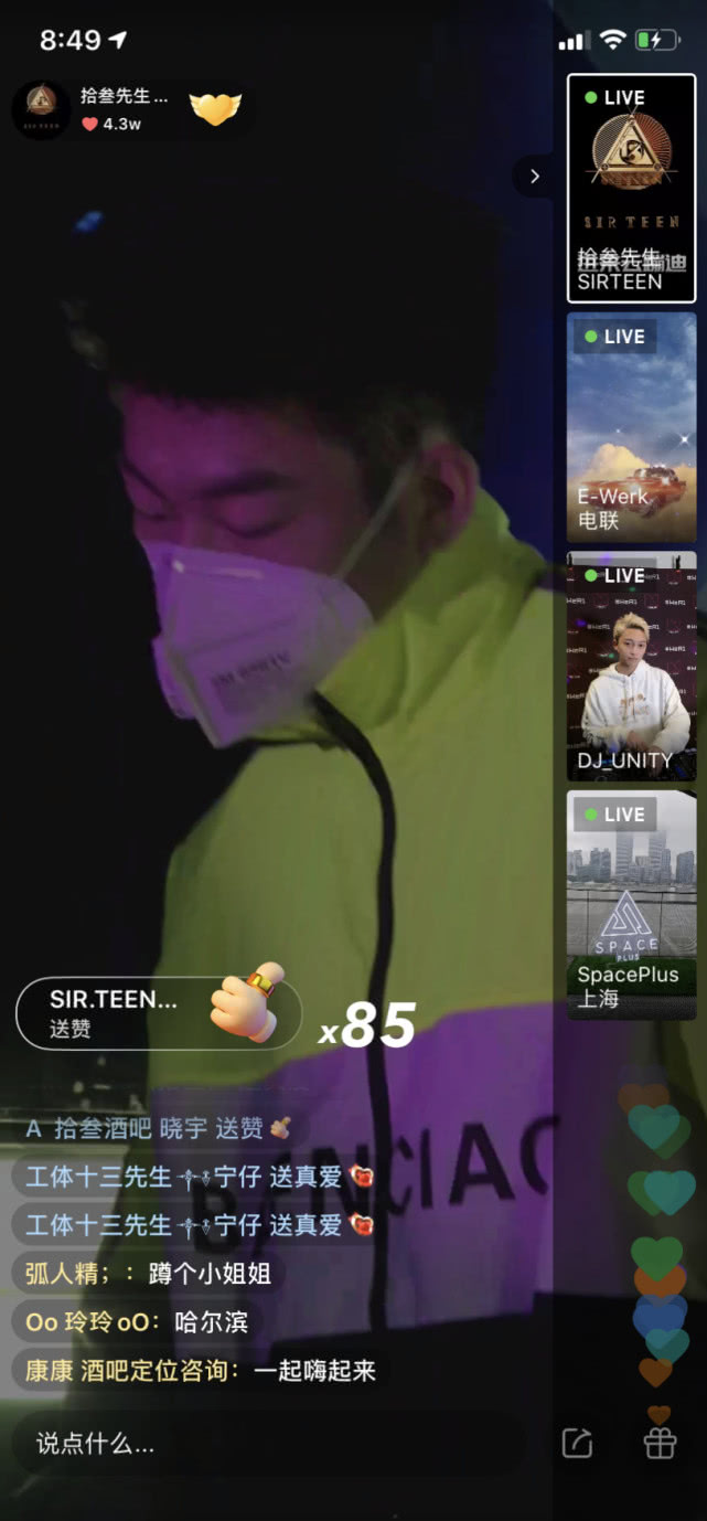 2月9日,ONETHIRD在抖音開設了云銳舞直播。從晚上9點到次日凌晨2點,累計在線人數超過 121.3 萬人,收獲打賞近200萬元人民幣。TAXX和ONETHIRD兩大最強夜店的線上“battle”, 夜店常客和電音愛好者喜聞樂見。有人甚至在朋友圈揣測:一場打賞在70-100萬,比線下盈利還要多。