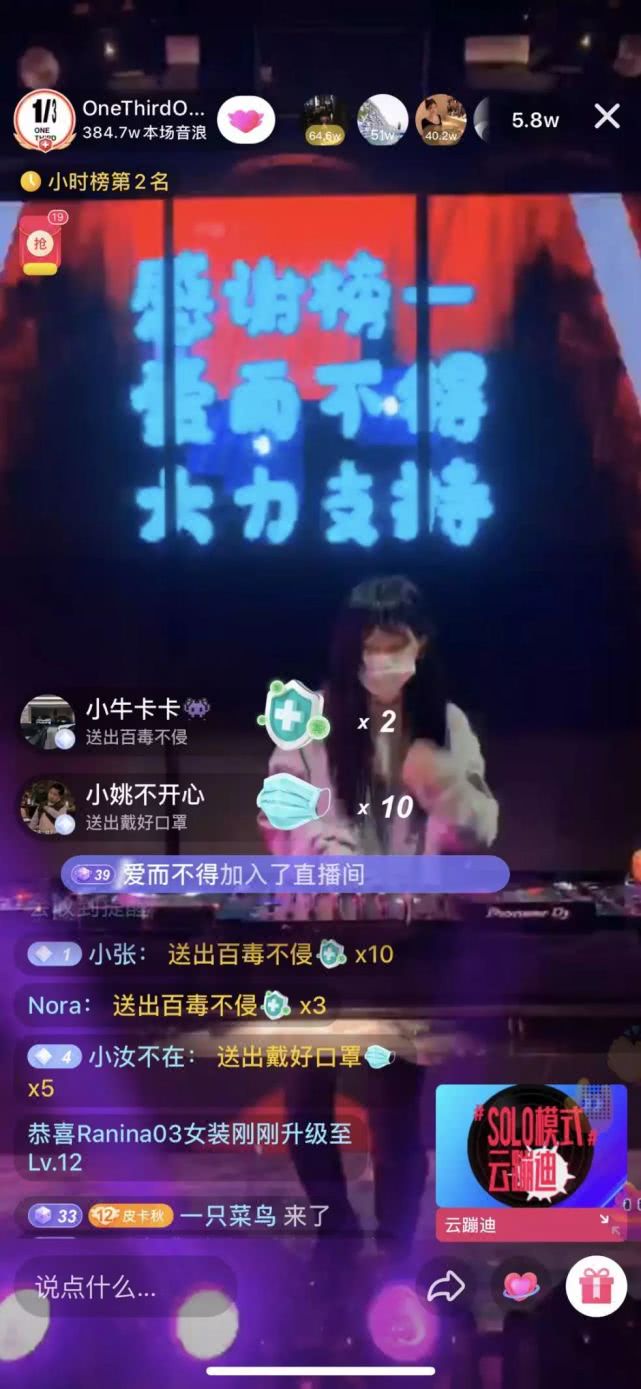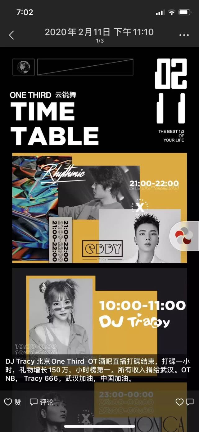 作為一家夜店的招牌之一,DJ們的日子也并不好過。2月11日,ONETHIRD在直播中邀請了嘉賓DJ Tracy。當晚,Tracy創下了1小時收入150萬音浪的成績,價值約15萬人民幣,一同歸入了ONETHIRD的公益通道。