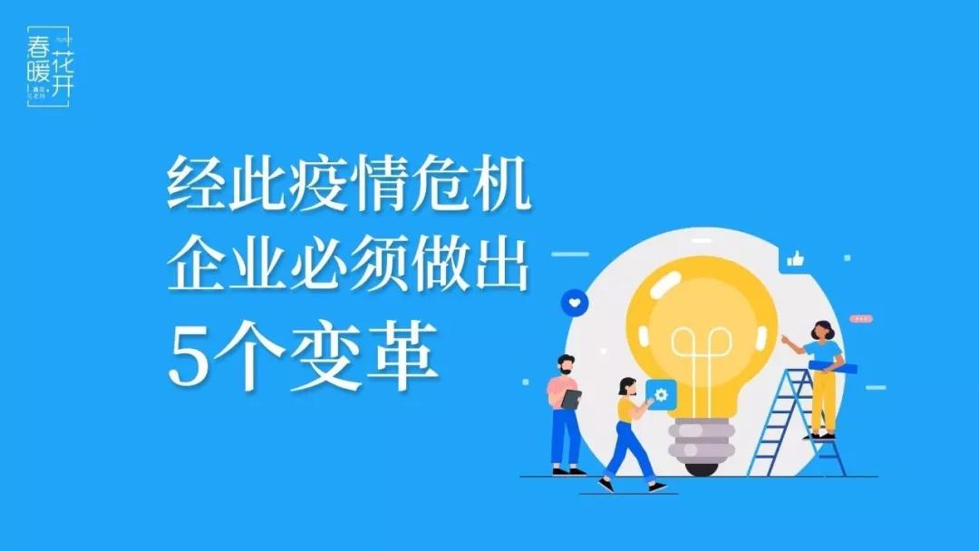新冠疫情給每個企業帶來巨大的危機,只有那些正確認知危機并做出徹底改變的企業,才能轉危為機,成為真正的強者。如何把疫情危機,變成企業自我變革升級的契機,需要企業做出5個方面的變革。