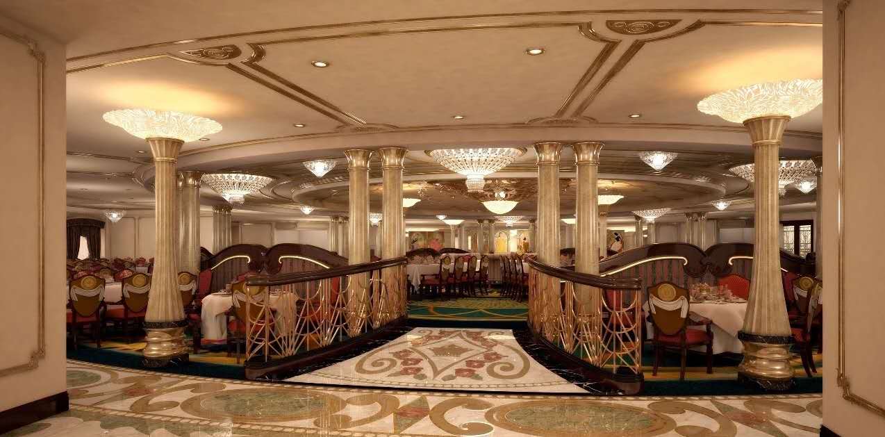 這艘船有14個(gè)甲板和1250個(gè)客艙。它可以容納4000名乘客和1458名機(jī)組人員。