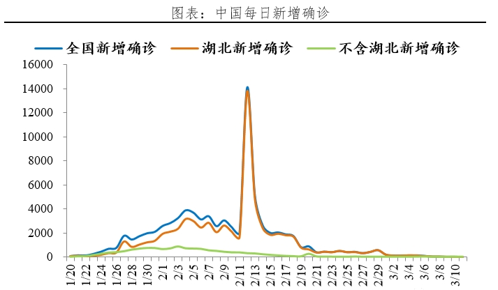 中國疫情正得到有效控制,從發(fā)電量、客運(yùn)量等數(shù)據(jù)看,2月中下旬以來國內(nèi)經(jīng)濟(jì)活動在快速恢復(fù)。截至3月16日,武漢以外連續(xù)5天無境內(nèi)新增,武漢新增確診已連續(xù)6天保持在個位數(shù)。從高頻數(shù)據(jù)看,3月前17天六大電廠日均耗煤量較2月環(huán)比增長27.7%,前15天商品房日均成交面積較2月環(huán)比增長193%,前15天全國日均客運(yùn)量較2月環(huán)比增長22.5%。國家發(fā)改委3月17日表示,除湖北等個別省份外,全國其他省(區(qū)、市)規(guī)模以上工業(yè)企業(yè)復(fù)工率均已超過90%,其中浙江、江蘇、上海、山東、廣西、重慶等已接近100%;貨運(yùn)也已正常化,鐵路裝車數(shù)已恢復(fù)到正常水平,民航、港口、水運(yùn)均正常運(yùn)營;3月16日調(diào)度發(fā)電量達(dá)178億千瓦時,明顯高于2月底的162億千瓦時,上升9.9%。