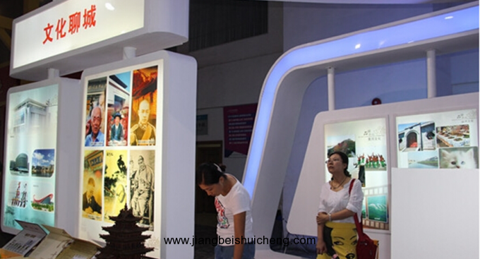 本屆文博會上,我市展臺以藍(lán)色為主基調(diào),以“水韻聊城、古韻聊城、文化聊城、品牌聊城、非遺聊城”五大板塊為線索,對我市文化改革發(fā)展成果、文化產(chǎn)品、文化產(chǎn)業(yè)發(fā)展進(jìn)行了充分展示和宣傳。