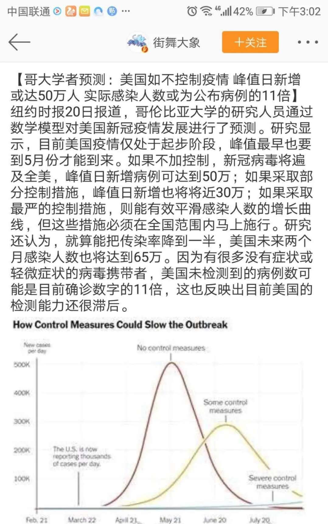 就這,還遠不是美國疫情嚴重程度的真實情況,據美國專家估計,美國實際感染人數可能是確診人數的11倍。如果不加控制,新冠病毒將遍及全美,美國的峰值日可達到50萬。這是一個恐怖的數據,令人感覺窒息。