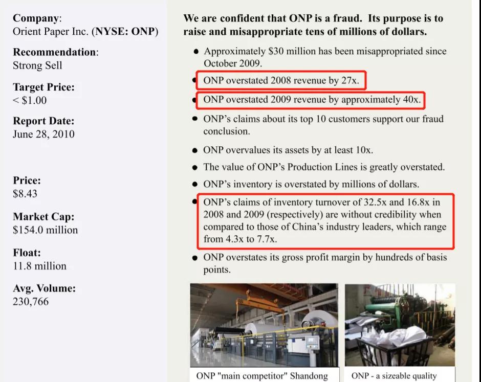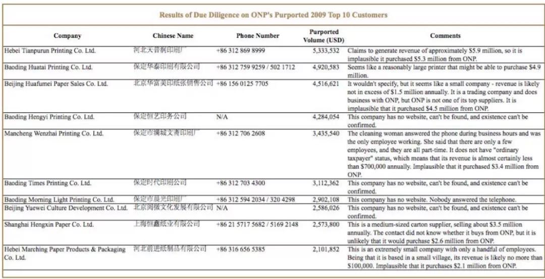 在對東方紙業進行全方位的調查之后,2010年6月,布洛克團隊發布了一份長達30頁的報告。