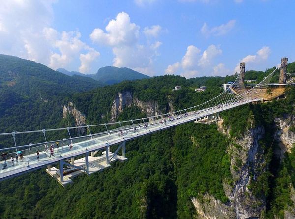 玻璃橋全長430米,橋面寬6米,橋面距谷底約300米,是目前世界最長、最高的全透明玻璃橋及世界首座斜拉式大變量空間索玻璃吊橋,擁有十項世界第一。正因為這樣的名氣,無論你害怕與否,都想來挑戰一番。