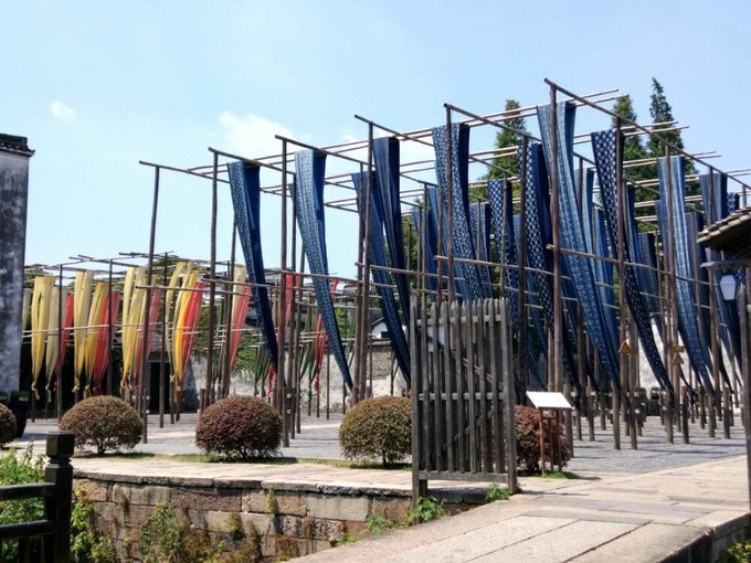 宏源泰染坊,始于宋代,東柵藍印花布制作基地,是必游景點之一。 藍色的布匹隨風飄動,十分唯美,上面的印花紋理別有韻味。