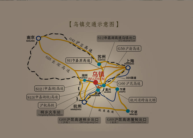 自駕:能到達烏鎮的高速公路有這幾條—S11乍嘉高速、S12申嘉湖高速、S13申嘉湖杭高速、G50滬渝高速、G60滬昆高速(滬向走桐鄉出口,杭向走屠甸出口)。東柵西柵都有收費停車場。東柵停車場在烏鎮子夜路,面積相對比較小,夜間不許停車。西柵有四個停車場,分別在西柵的東門、南門和北門(北門是出口,東、南門為入口)和烏鎮中學員工宿舍西側。但員工宿舍西側的停車場只在黃金周期間對外開放。