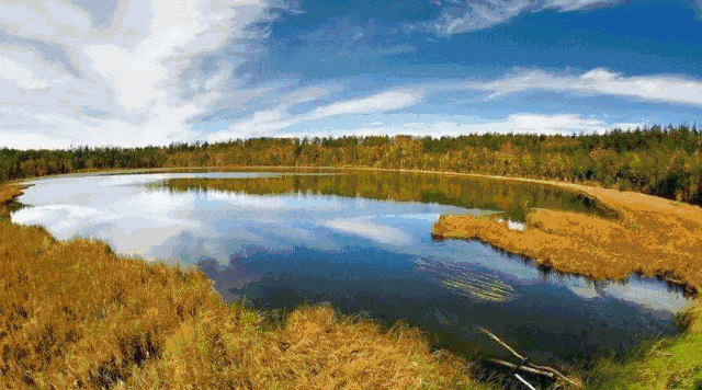 湖面上碧波蕩漾,湖畔蘆葦叢生