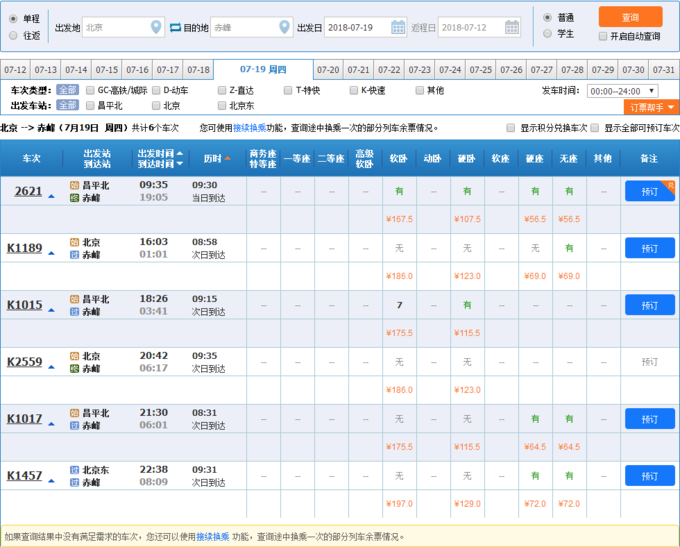 1.可以選擇先乘坐火車/飛機(jī)抵達(dá)赤峰市,以下以北京-赤峰為例。