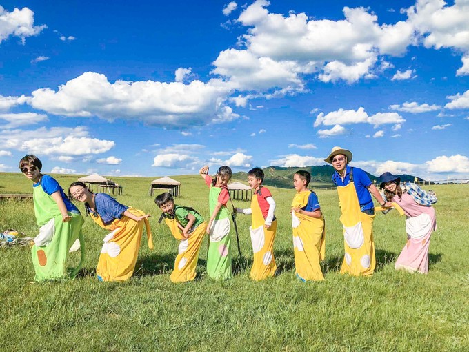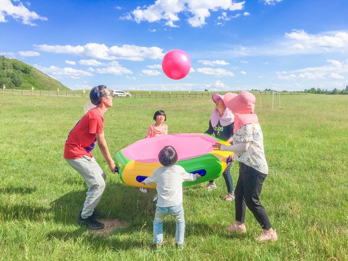 四方綠茵場,看不到邊際,望不到觀眾席;趣味草原運(yùn)動會,滑沙、拔河、袋鼠跳、鴻運(yùn)彩球、碰碰球……我沒想到,在沒有圍欄的草原踢球是這樣的酣暢淋漓;我沒有想到,在草原上放風(fēng)箏只能感嘆線不夠長;我沒想到,在草原還能玩這么多游樂項(xiàng)目。這里簡直就是一個(gè)草原迪士尼,兒童的天堂樂園,甚至連大人也能在這里找回童年的樂趣。