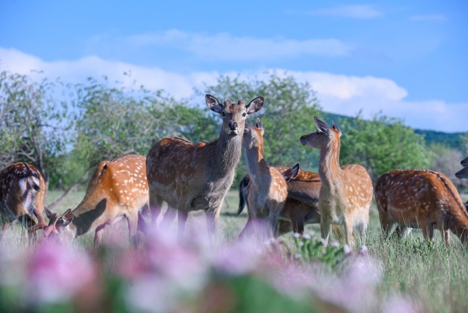 從小到大,最喜歡看的電視節(jié)目是動物世界,最喜歡去的地方是動物園,似乎孩子都不能抵擋動物帶來的喜悅。長大一些,慢慢不滿足于圍墻里的動物,希望能夠去野生動物園,感受大自然動物的天性。但也僅限于坐在觀光車上,在工作人員的指導(dǎo)下,小心翼翼地觸摸他們。我從來沒有想過,我可以和他們一起奔跑在蒼茫的草原上。零距離接觸草原精靈梅花鹿,和當(dāng)?shù)厝艘黄饑恫菰螅婉R兒輕聲耳語,懷抱小羊羔,時(shí)不時(shí)還能看到雄鷹展翅高飛追捕獵物的場面…