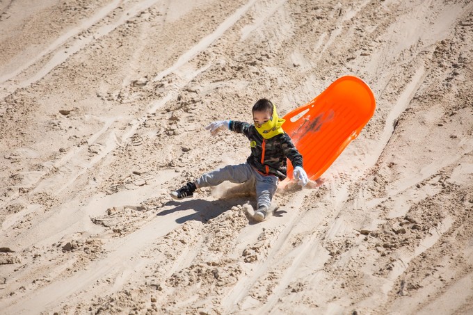 沒有去之前,我曾經(jīng)因?yàn)槟慷貌菰耐懟耐矗笃懵兜纳车卮掏次业碾p眼,卻也無能為力。來到壩上草原,我發(fā)現(xiàn),原來沙化的草原還能作為天然的滑沙場,因?yàn)楹⒆觽兊臍g聲笑語,我突然釋然了,因?yàn)樗伊肆硪环N使命,一種延續(xù)快樂的使命。
