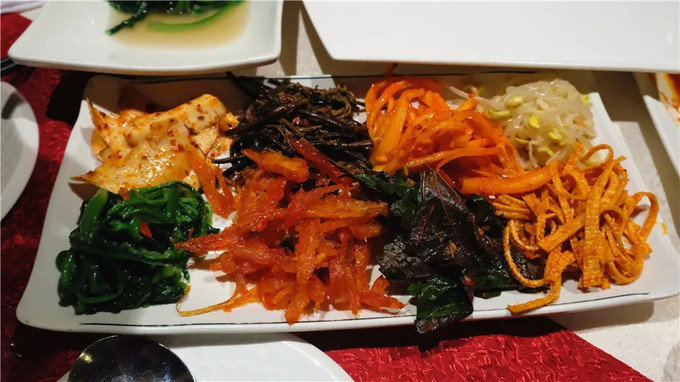 向當(dāng)?shù)厝舜蚵犻L春的特色餐飲,得知有一家朝鮮美食體驗館,所以有幸近距離接觸到了北朝鮮的女孩。