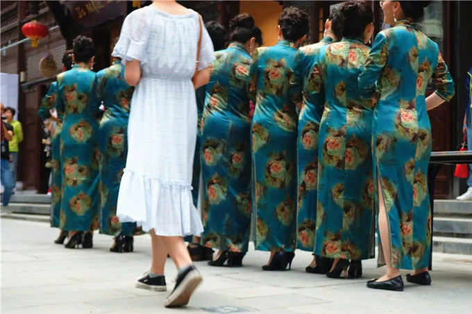 能感受到這里的“慢生活”。宅院、小洋樓、飯館、茶館、客棧、酒吧,都是川渝味道,由于是假日,所以當(dāng)天有很多歌舞表演,看這些嫵媚多姿的大姐姐們,一個個搖曳多姿,充滿自信。