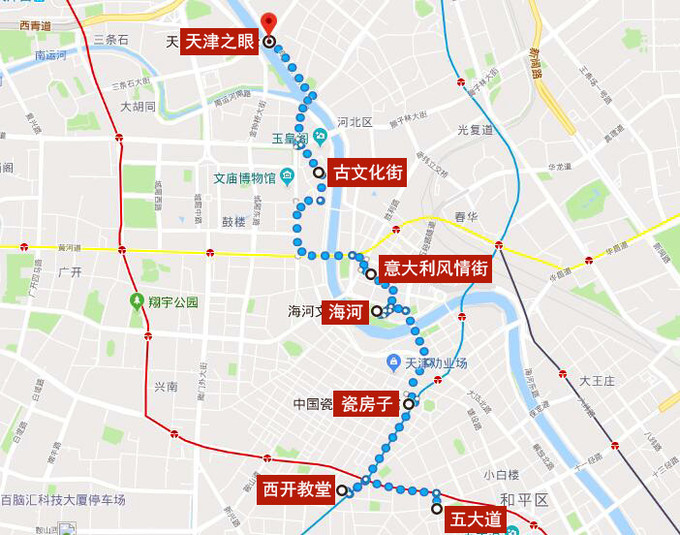 交通:海河縱貫天津市區,其核心景觀區位于津灣廣場、意大利風情街附近,地鐵天津站、津灣廣場站、東南角站、建國道站等都在附近,公交路線也四通八達,十分方便