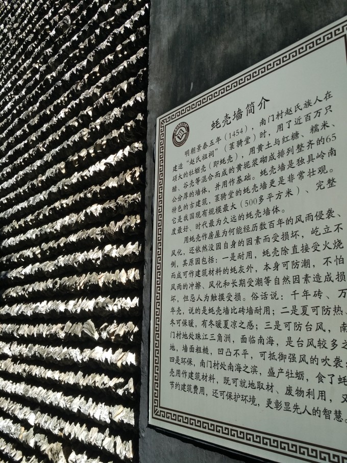 下面就是重頭戲:菉猗堂的蠔殼山墻,包攬我國最大、最古老、保存最好的蠔殼墻。蠔殼防潮通風防臺風,屹立五百年而不倒,也是廢物利用的典范。