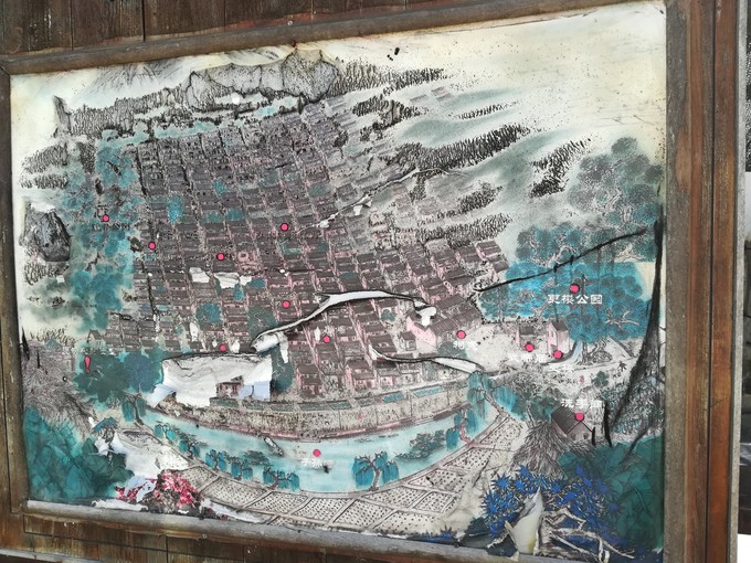 村口的全莊地圖,推薦停車在莊門,莊門進莊門出,幸存古屋集中在中心巷道東側,南邊主要是花田。