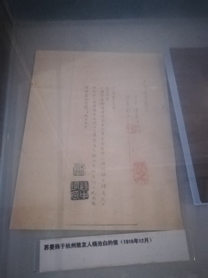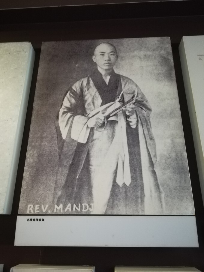 雕像左邊是蘇曼殊的紀念館,陳列了幾幅蘇曼殊書畫及一些資料的復制品。