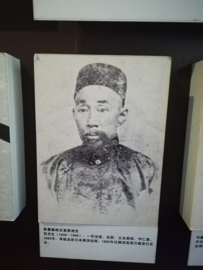 蘇曼殊先生之父蘇杰生,在日本經商,娶一日本女子為妻生下曼殊,后任英商茶行買辦