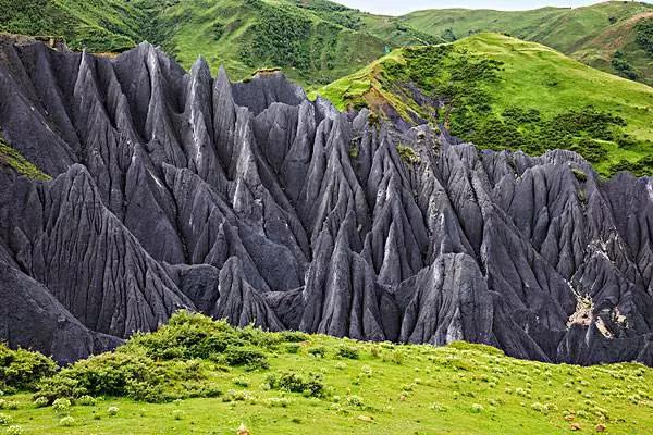 然后我們去到八美【墨石公園。八美地質公園景區地處中國最美景觀大道318國道核心區,是香格里拉之巔海螺溝通向香格里拉之魂稻城亞丁的中轉站,被稱為“中國地質百慕大”,是我國唯一的高原石林景觀,同時也是318道上新晉的網紅打卡地,具有“春賞格桑夏避暑,秋觀彩林冬踏雪”的風光;墨石公園有著許多千姿百態的奇幻墨石,忽而是高聳綠地又忽而裸露出冷峻的黑灰巖面,參差起落極具外星球般的異域風情。其中還有一條名為卡瑪的河穿墨石公園而過,傳說當年格薩爾王王妃珠姆在此游玩兒時掉下一條絲巾,絲巾化為卡瑪河,滋潤著這片石林以及當地的人們。