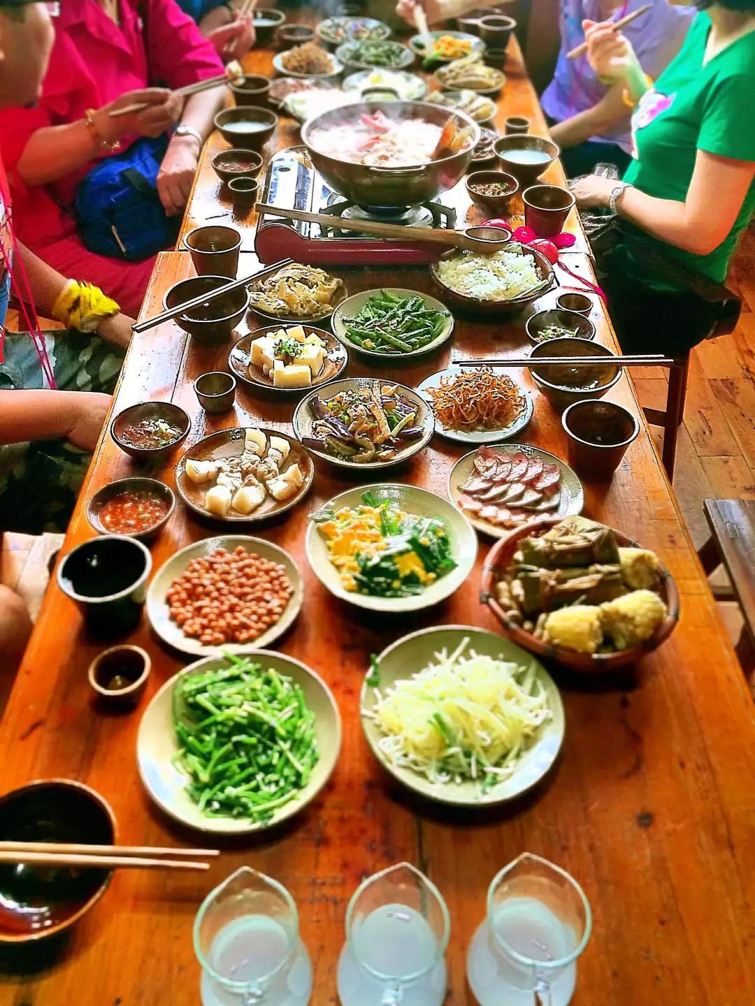 西江安排特色長(zhǎng)桌宴酸湯魚(yú)火鍋品苗家米酒,體驗(yàn)苗寨人家的“高山流水”,感受苗妹的熱情