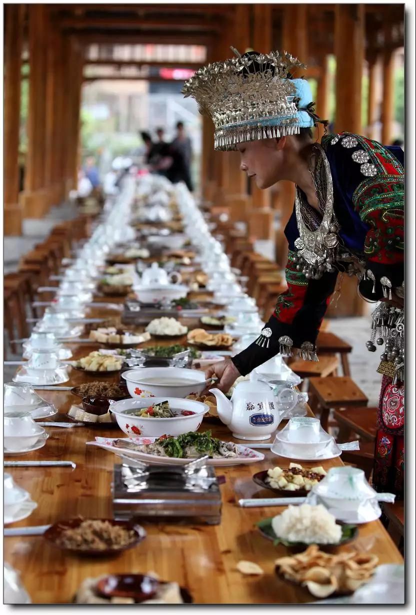 之后在指定時(shí)間地點(diǎn)參加贈(zèng)送項(xiàng)目—【苗家長(zhǎng)桌宴】,長(zhǎng)桌宴是苗族宴席的最高形式與隆重禮儀,席間接受苗家少女飛歌敬酒,感受著濃郁而古樸的少數(shù)民族風(fēng)情。品嘗源生態(tài)的稻田酸湯魚(yú),暢飲“高山流水”苗家米酒,享受苗族人最高禮儀的貴賓接待!