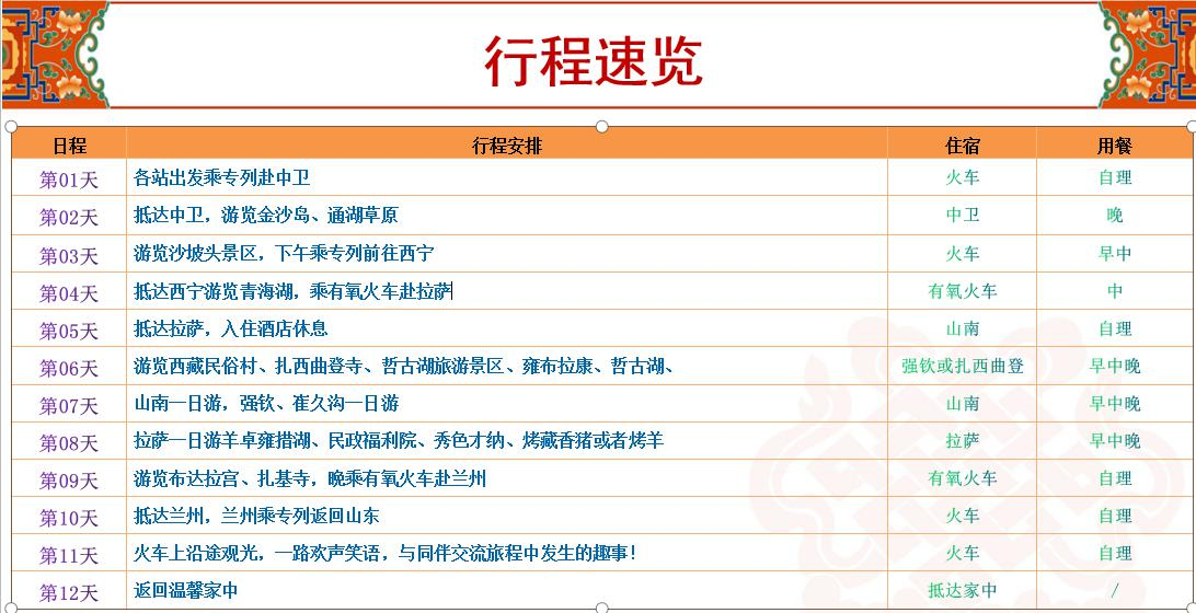 3、交通:往返火車臥鋪,當地旅游車,保證每人每正座,因特殊氣候條件,旅游車輛均無空調設施。