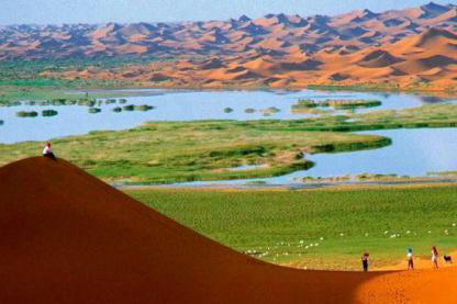 下午抵達中衛,游覽【金沙島】沙中有綠、綠中有水、湖中有島、島中有湖、水相通、路相連、樹成林、鳥成群的自然生態景區,中衛市金沙島位于中國第四大沙漠——騰格里沙漠東南緣,是集沙漠、濕地、湖泊、長城等景觀于一體,融入邊塞文化、大漠文化、軍屯文化的旅游度假景區后乘車至內蒙古阿拉善左旗的【通湖草原】(含蒙古族風情接待,獻上蒙古人最崇高的敬意-潔白的哈達) (不含景區娛樂項目),匯集了濕地、草原、沙泉、綠洲、牧村等多種自然人文景觀,被中外游客喻為沙漠中的“伊甸園”。入住酒店。