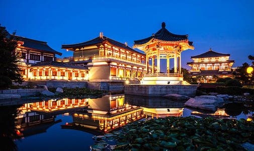 結束后赴西安游覽【大唐芙蓉園】它是在原唐代芙蓉園遺址以北,仿照唐代皇家園林式樣重新建造的,是中國第一個全方位展示盛唐風貌的大型皇家園林式文化主題公園,園內建有紫云樓、仕女館、御宴宮、杏園、芳林苑、鳳鳴九天劇院、唐市等許多仿古建筑,是中國最大的仿唐皇家建筑群。