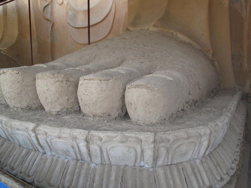 甘谷大佛石窟造象可遠(yuǎn)溯至北魏,具體年代已經(jīng)無(wú)從稽考。現(xiàn)存釋迦牟尼大佛像始鑿于北魏,一直到盛唐才趨完美。大佛石胎泥塑,身高23.3米,腰闊10.4米,結(jié)跏跌坐于蓮座之上,高大魁梧,溫順善良,坐于30.2米高、窟頂呈圓拱形的石窟內(nèi),頤面豐滿,肉髻高突,兩耳下垂,頸短并飾三道弦紋,短須作蝌蚪狀,施拔濟(jì)眾生印,足踩豐蓮。窟內(nèi)還殘存懸塑達(dá)摩、頻伽、飛天、卷云、蓮葉等,栩栩如生。