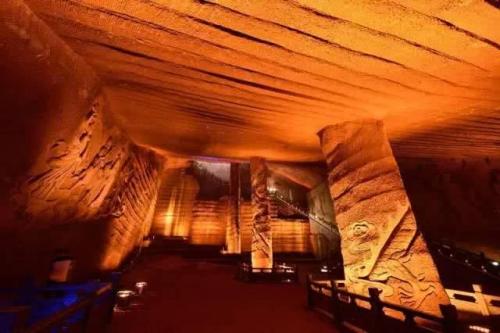 龍游石窟曾經(jīng)深藏水底,當(dāng)?shù)厮追Q深水潭。從石窟陳列館展示的圖文、錄像資料中了解到,關(guān)于石窟形成之謎,說(shuō)法有多種,囤兵、囤糧,祭祀、采石……甚至稱旅游界已譽(yù)此為“世界第九大奇跡”,使人產(chǎn)生豐富的遐想,探謎的游人絡(luò)繹不絕。