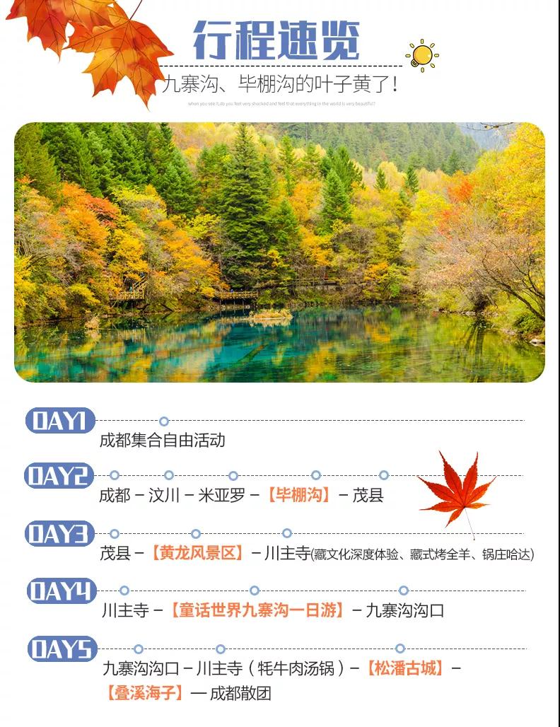 春看花,夏消暑,秋賞葉,冬玩雪,在彩林搖曳的畢棚溝九寨溝玩到盡興后,我們抵達成都,結束本次驚艷的秋色川西之旅。