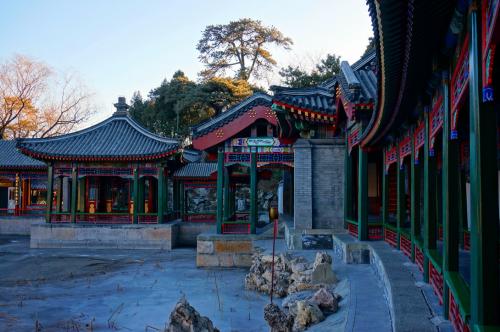 仁壽殿后是三座大型四合院:樂壽堂、玉瀾堂和宜蕓館,分別為慈禧、光緒和后妃們居住的地方。宜蕓館東側的德和園大戲樓是清代三大戲樓之一。頤和園自萬壽山頂的智慧海向下,由佛香閣、德輝殿、排云殿、排云門、云輝玉宇坊,構成了一條層次分明的中軸線。
