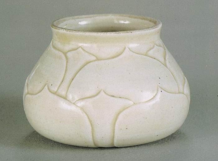 劃花是宋代定窯瓷器的主要裝飾方法之一。通常以篦狀工具劃出簡單花紋,線條剛勁流暢、富于動感。蓮瓣紋是定窯器上最常見的劃花紋飾。有一花獨放、雙花并開、蓮花荷葉交錯而出、有的還配有鴨紋,紋飾簡潔富于變化。立件器物的紋飾大都采用劃花裝飾,刻花的比較少見。早期定窯器物中,有的劃花紋飾在蓮瓣紋外又加上纏枝菊紋,總體布局顯得不很協調,這是當時尚處于初級階段的一種新裝飾手法,也給定窯器斷代提供了一個依據。