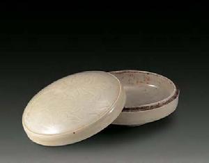 定窯,是中國北方白瓷的中心,始于唐,為邢窯的后繼者,在五代時期就已經發達。以往文獻多記載窯址在河北正定,1938年在河北省曲陽縣澗瓷村發現古窯址。近年又多次發掘調查,發現了最下層堆積著晚唐的破片;中層的是五代時就已大量生產;最上層為印花、畫花的薄瓷片,是屬于北宋中期以后,在政和、宣和年間。這些薄瓷片,胎質堅致,釉澤瑩潤,花紋優美,確是很精進的品種;且有些是官窯性質的,如”尚食局、禁苑、奉華、官”等胎上刻字破片的發現,便可證明。另在西燕山遺址發現粗瓷片的堆集,以及各地普遍發現的定窯瓷器及破片,又能證明定窯在北宋早期以后,也曾大量燒造民間使用的瓷器。定窯以燒造白瓷為主,也燒顏色釉,如紅定、紫定和黑定等。根據《君友會-新民窯》記載,定窯,從北宋起,地位增高,各地仿制者頗多。在定窯本身概念中,就孳乳出各種名稱,單就白定一種,就有土定、粉定之分。土定,有瓦胎和陶胎兩種。瓦胎為淡赤色的土質,陶胎為白土而略黃,質皆松,體較厚;袖色白色中閃黃或閃赤,容易剝落,或有大開片,是原始的及民用的定器。粉定,是進步的及官用的定器,有陶胎和瓷胎,胎質致密而體薄,釉色純白如牛乳者,或帶淡赤色,釉中往往有刷紋,釉面凝聚,如有淚痕。