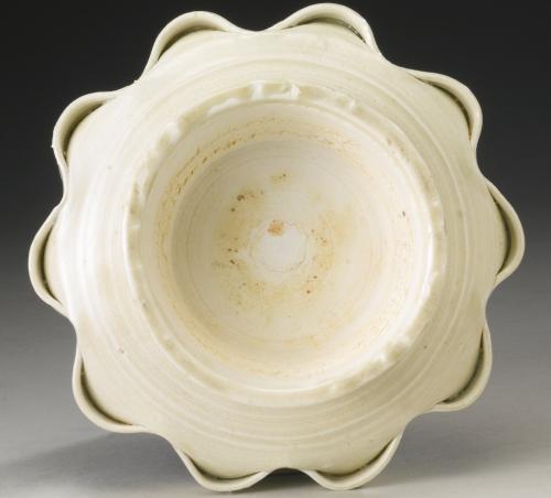 定窯創燒于唐朝后期。從這時一直到五代的定窯瓷器,還較為粗糙簡單,器型以碗為主,正處于向精瓷的過渡階段。但在五代中后期,定窯白瓷出現了一次根本性的飛躍。所燒瓷器不再施化妝土,胎、釉呈現出精、白薄的特征。有些器物的白度甚至超過了邢窯的細白瓷器。