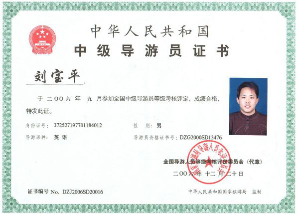 公司總經理是聊城市第一位中級導游員,也是聊城目前唯一英文中級導游員。 相信我們能為您提供最專業的導游服務;
