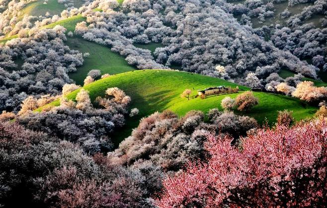 花期說明:伊犁杏花溝,一般在4月中下旬開放,杏花花期較短,受氣溫及天氣變化影響大,系列團無法確保最佳花期;伊犁天山野杏林及其他野果林分布范圍較廣,不同地方花開不同。吐爾根杏花花期過后,我們將安排置換(中華福壽山景區)位于新疆伊犁哈薩克自治州霍城縣西北的大西溝鄉境內。
