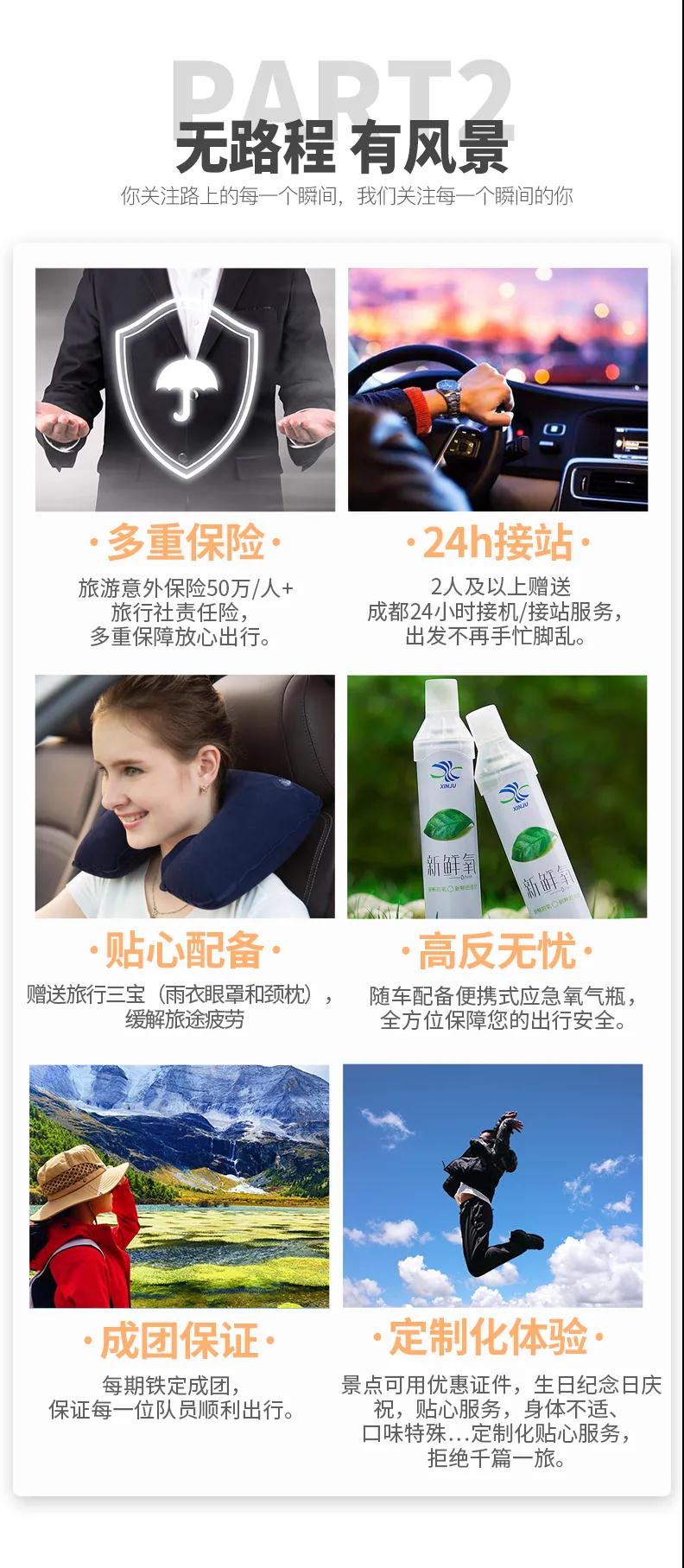 2、由于川西地區路況較差,山道狹窄,有可能因為堵車而發生延誤,請大家盡量預定第二天返程的航班或車次。