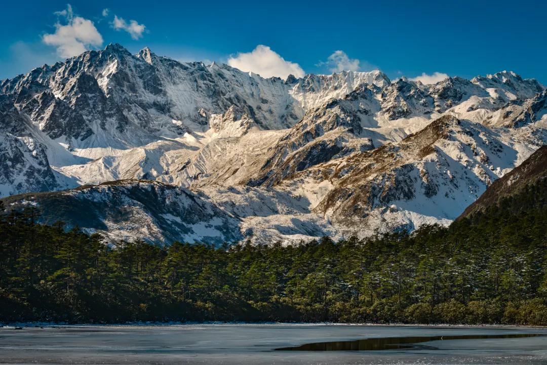 抵達【扎罐崩】后徒步上山直接抵達沖古寺,觀賞沖古寺風光及神山【仙乃日】,朝拜【卓瑪拉錯神湖】,即珍珠海。珍珠海是仙乃日的融雪形成的海子,面積約0.1平方公里,密林中的珍珠海如一顆鑲嵌在蓮花寶座上的綠寶石,碧波蕩漾,粼粼波光中透出無限清麗,湖畔四周,林木搖曳。冬天湖邊林子灌木叢漸次經霜,寂寥而冷峻,珍珠海更顯清冽,如一面鏡子倒映著白雪皚皚的仙乃日,鏡花水月,似真似幻。游覽結束后原路返回,乘坐觀光車離開景區集合。