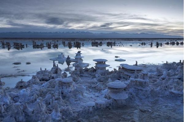 茫崖翡翠湖,位于青海與新疆交界處的茫崖市花土溝鎮。翡翠湖面積26平方公里,湖面開闊,碧波蕩漾,一邊倒映著雅丹地貌油沙山,一邊倒映著昆侖雪山,山與湖水相交相應,在不同的時間和不同的角度下,呈現出絢麗多彩的景象。夕陽余暉染紅天穹倒映湖面,構成一副魔幻般的畫卷。風平浪靜時,碧綠如染,清澈透亮宛若鏡面,顏色純美剔透,如同鑲嵌在戈壁上的翠玉,冬季的翡翠湖,令人震撼。