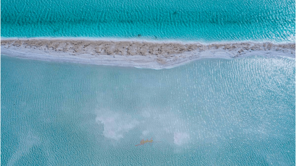 深藍色的一側(cè),湖里有好多水鳥、野鴨。